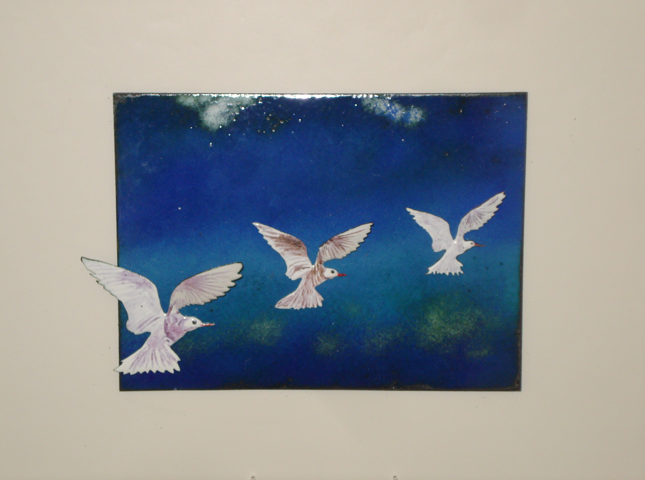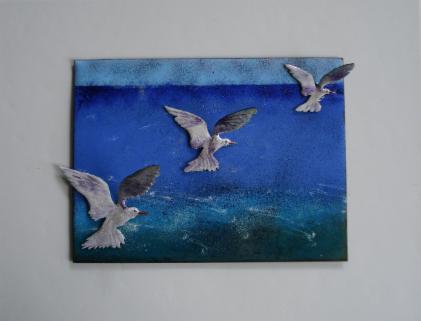 Seagulls #1, 3-D emaille op keramiek tegel 25 x 33 x 2 cm | Seagulls #3, 3-D emaille op keramiek tegel 25 x 33 x 2 cm |