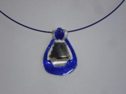 Emaille op koper met zilver en turquoise in zilveren zettingen Hanger | Emaille op fijn zilver met labradoriet in zilveren zetting |